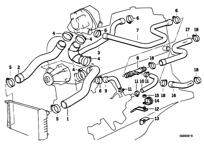OB E30 324d M21 4 doors / Engine/ Cooling System Water Hoses 2